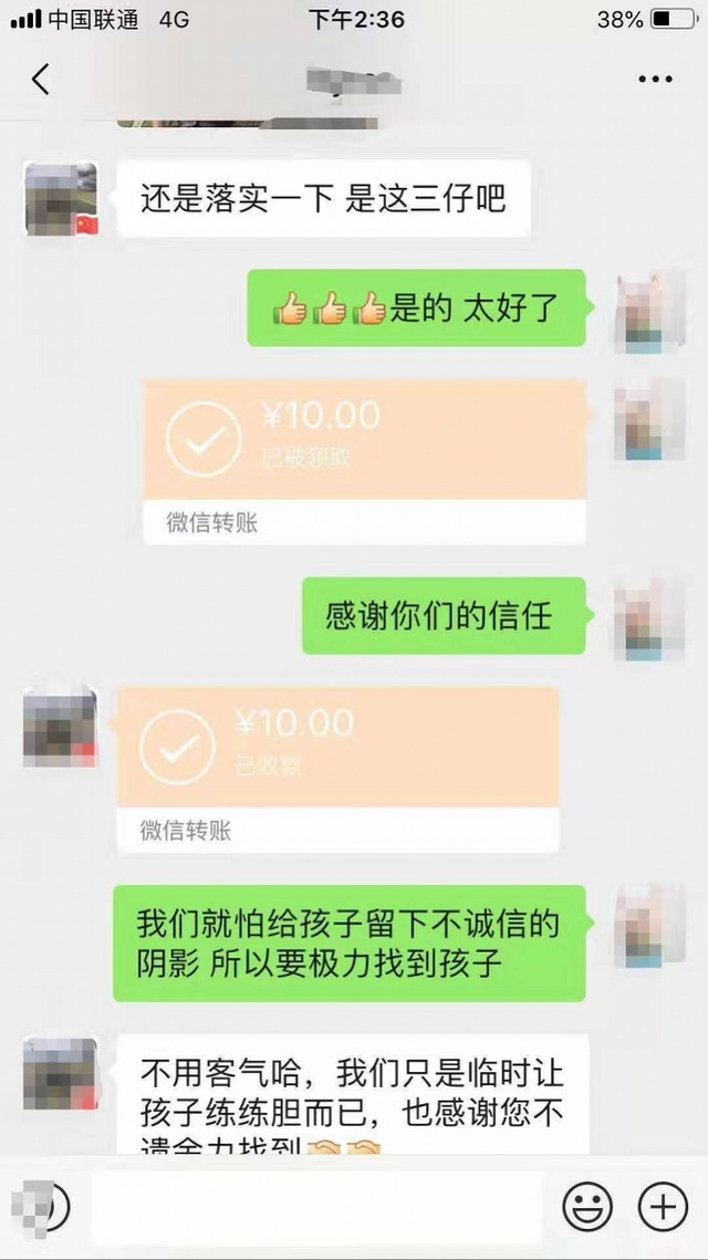 4日,剛從深圳返回青島的張先生告訴記者,中午2時35分,他的微信出現(xiàn)一個新增好友,對方說自己是深圳灣10月1日晚賣水男孩的爸爸,張先生立刻把對方加為好友。賣水男孩爸爸通過微信給張先生發(fā)來一張照片,是國慶當(dāng)晚孩子在路邊賣水時拍的,讓張先生確認(rèn)一下是不是照片上的孩子?!笆撬麄?,太好了,終于找到了?!睆埾壬S即通過微信轉(zhuǎn)賬10元錢過去,賣水男孩爸爸也收款成功。(此前報道:緊急尋人!深圳灣畔的賣水孩子,青島大叔在找你…)