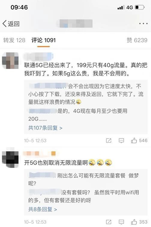 也有很多用戶在觀望中,"等你們用個幾個月5G,告訴我費用,我再看看是不是要跟你們一起混。"