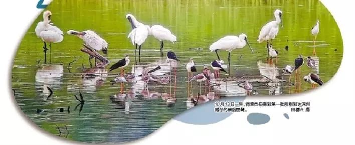 8、昨日一早,10只黑臉琵鷺在秋雨中飛抵福田紅樹(shù)林保護(hù)區(qū)魚(yú)塘,被正在進(jìn)行鳥(niǎo)類(lèi)同步調(diào)查的深圳觀鳥(niǎo)協(xié)會(huì)調(diào)查員發(fā)現(xiàn)。據(jù)悉,這是今年候鳥(niǎo)遷徙季節(jié)到來(lái)后首批來(lái)到深圳越冬的黑臉琵鷺。