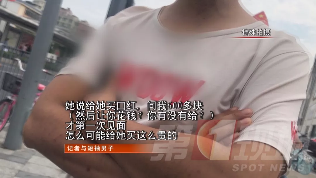 黑衣女子送走一位男子后,記者上前與該名男子搭話,男子透露,他和黑衣女子是通過網絡聊天軟件認識的。才第一次見面,女子就提出讓男子買禮物。