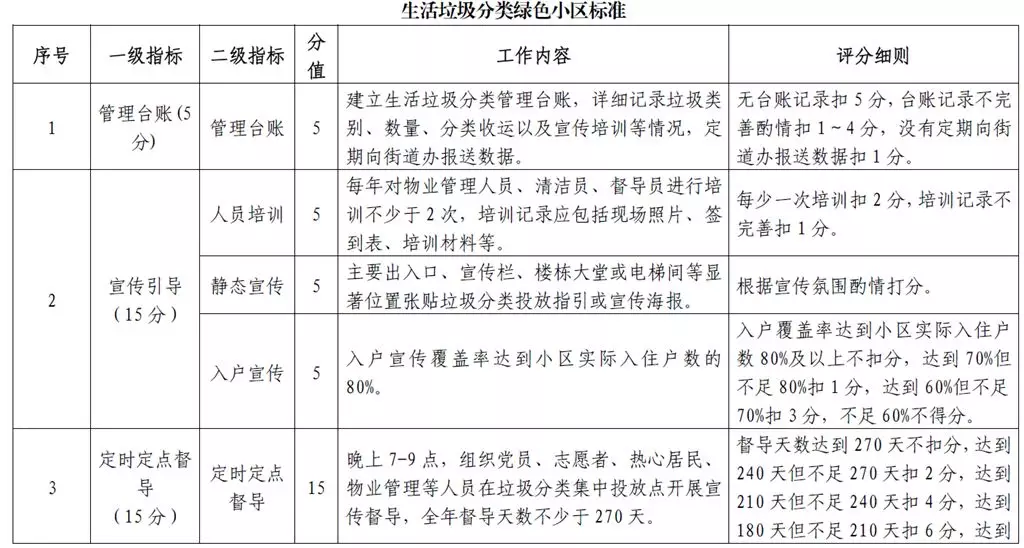 針對單位激勵對象不同,《辦法》還詳細制定了《生活垃圾分類綠色單位標準》《生活垃圾分類綠色學校標準》《生活垃圾分類綠色小區(qū)標準》等要求;針對個人激勵對象,也明確提出了垃圾分類督導員、志愿者、教師和其他從業(yè)人員等不同要求。