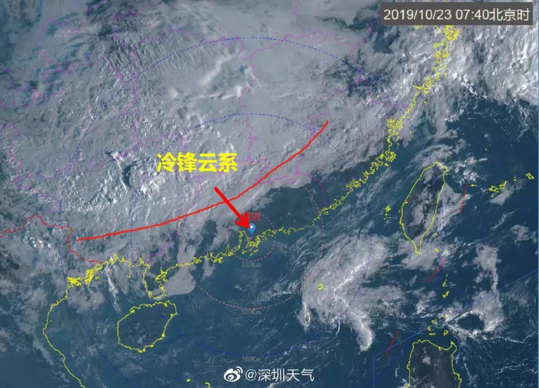 目前冷空氣前鋒已到達(dá)粵北,預(yù)計(jì)今日傍晚前后到貨,深圳屆時深圳云量增多,可能伴隨著分散小雨。