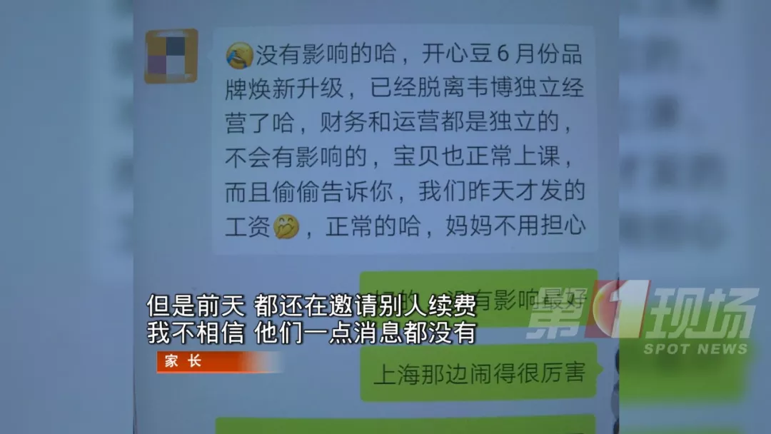 深廣電第一現(xiàn)場2019年10月27日訊 韋博英語倒閉風波席卷全國,它旗下的少兒英語品牌——開心豆少兒英語最近也被傳出經(jīng)營不善,多家門店停業(yè),不少深圳的家長向我們求助,說他們家附近的開心豆招呼都不打就關門,負責人也不見了,這是怎么回事?