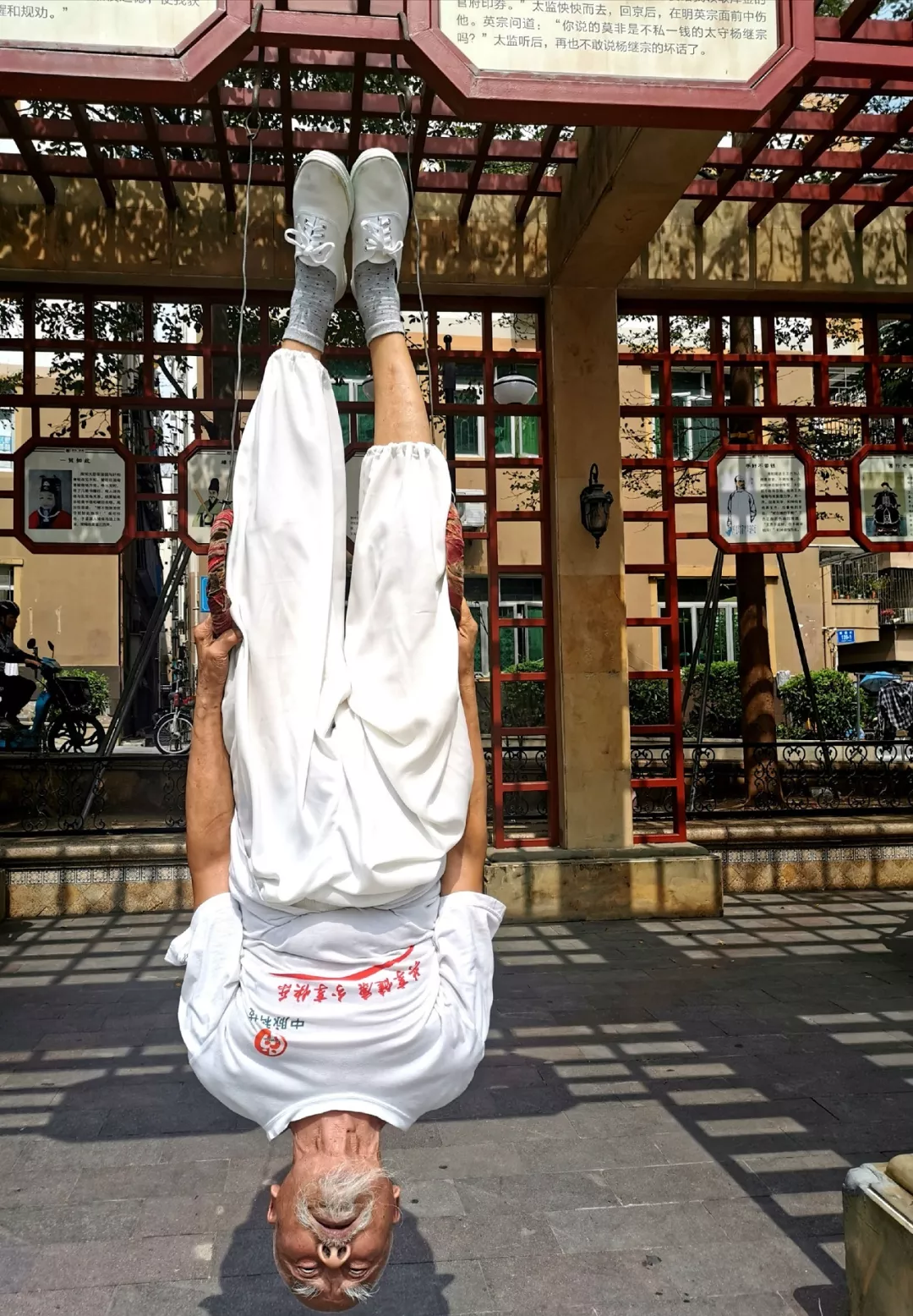 在鍛煉這件事上,他很認(rèn)真,堅(jiān)持不懈,60多年如一日,風(fēng)雨無阻,從未偷懶過。漸漸地,魏宗信發(fā)現(xiàn)倒立的好處極多,還變成了自己的一項(xiàng)“絕技”。后來他開始教妻子和兒女一起練習(xí)倒立。另外,他在吃飯這件事上也挺“認(rèn)真”,每周一三五做魚,二四六燒肉,葷素搭配,有滋有味。