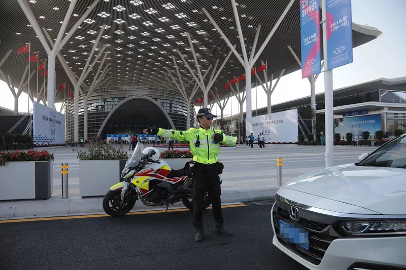 為確保現(xiàn)場(chǎng)交通正常通行,杜絕車輛違停等交通違法現(xiàn)象,深圳交警在展會(huì)期間對(duì)周邊交通加以管控。以深圳國際會(huì)展中心為中心,由內(nèi)至外分為交通核心區(qū)、交通管控區(qū)和交通疏導(dǎo)區(qū)。