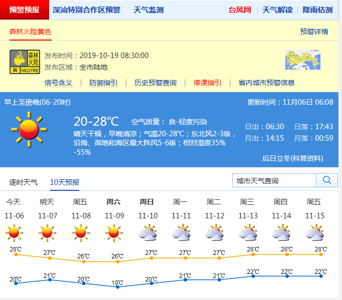 見圳客戶端·深圳新聞網(wǎng)2019年11月6日訊 近幾日,深圳天氣早晚清涼,持續(xù)干燥。據(jù)“深圳天氣”官方微博消息,今天(11月6日),深圳晴天干燥;氣溫20-28℃;東北風(fēng)2-3級(jí);相對(duì)濕度35%-55%。