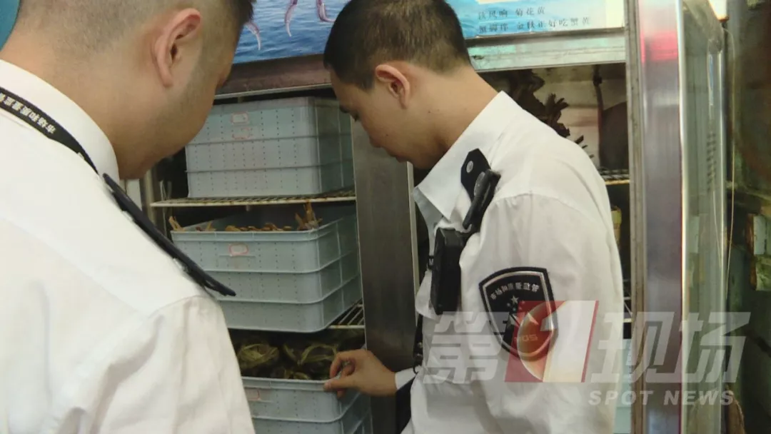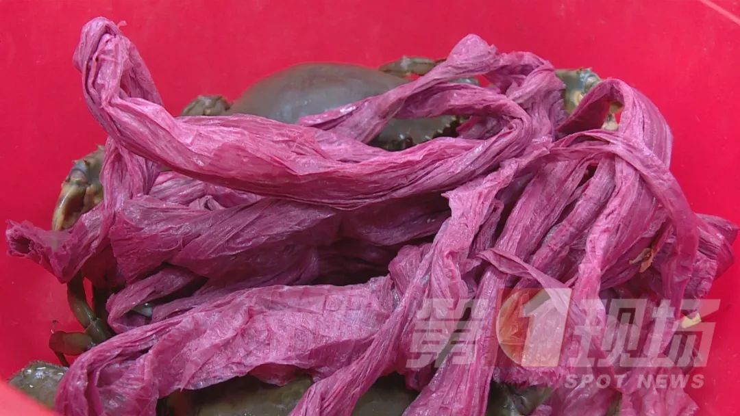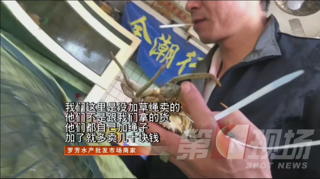執(zhí)法人員突擊檢查了羅芳水產批發(fā)市場內幾間售賣膏蟹的商鋪,并沒有在店內發(fā)現(xiàn)粗紅繩的蹤影,所有膏蟹以及大閘蟹所捆綁的繩子都是符合規(guī)格的,沒有吸水和壓秤的現(xiàn)象。