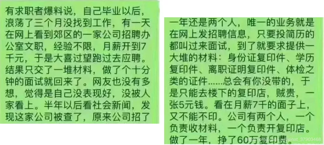 見圳客戶端·深圳新聞網(wǎng)2019年11月7日訊 有個帖子,最近廣為流傳,說是有騙子掛羊頭賣狗肉,打著公司招聘的幌子賺應聘者的復印費,復印一張5塊錢,竟年入60萬!