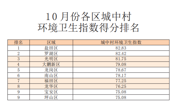 10月份城中村環(huán)境衛(wèi)生指數(shù)測評(píng)成績發(fā)布