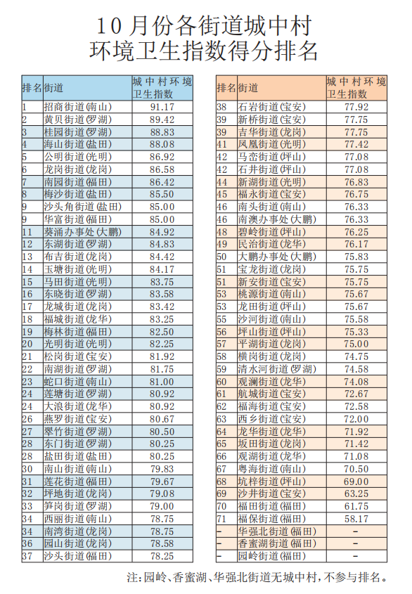原標(biāo)題:10月份深圳市環(huán)境衛(wèi)生指數(shù)測評(píng)成績發(fā)布