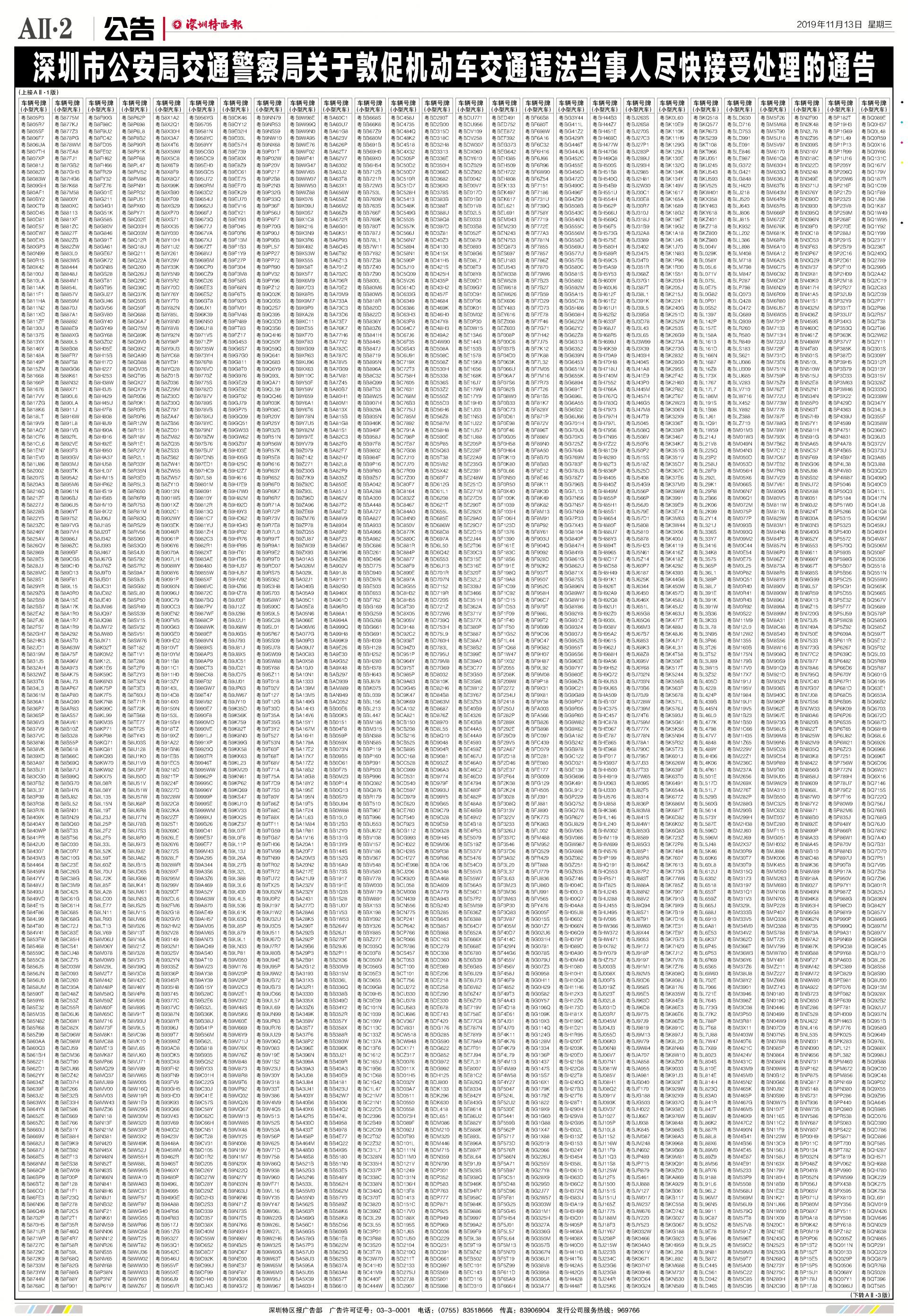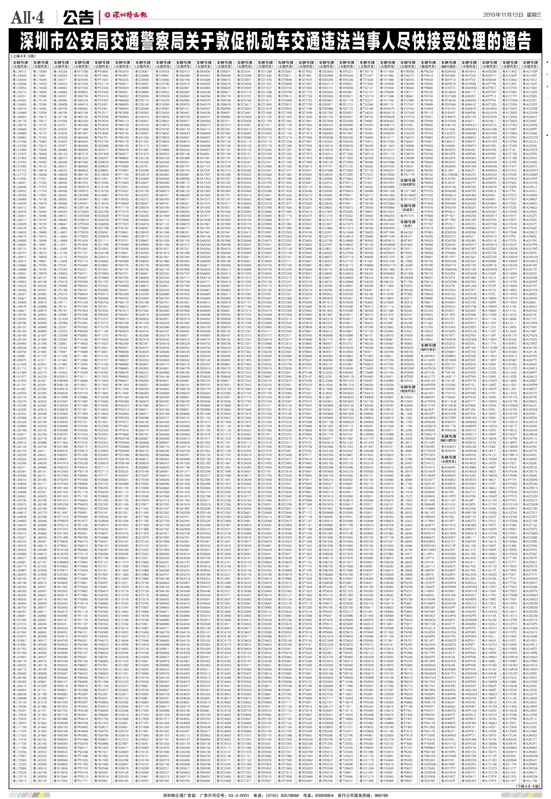 今年7月至10月初,全市機(jī)動車被“電子警察”抓拍交通違法行為1342781宗,深圳交警通過多種方式進(jìn)行交通違法行為告知,但截止至目前仍有部分機(jī)動車的非現(xiàn)場交通違法未及時處理。