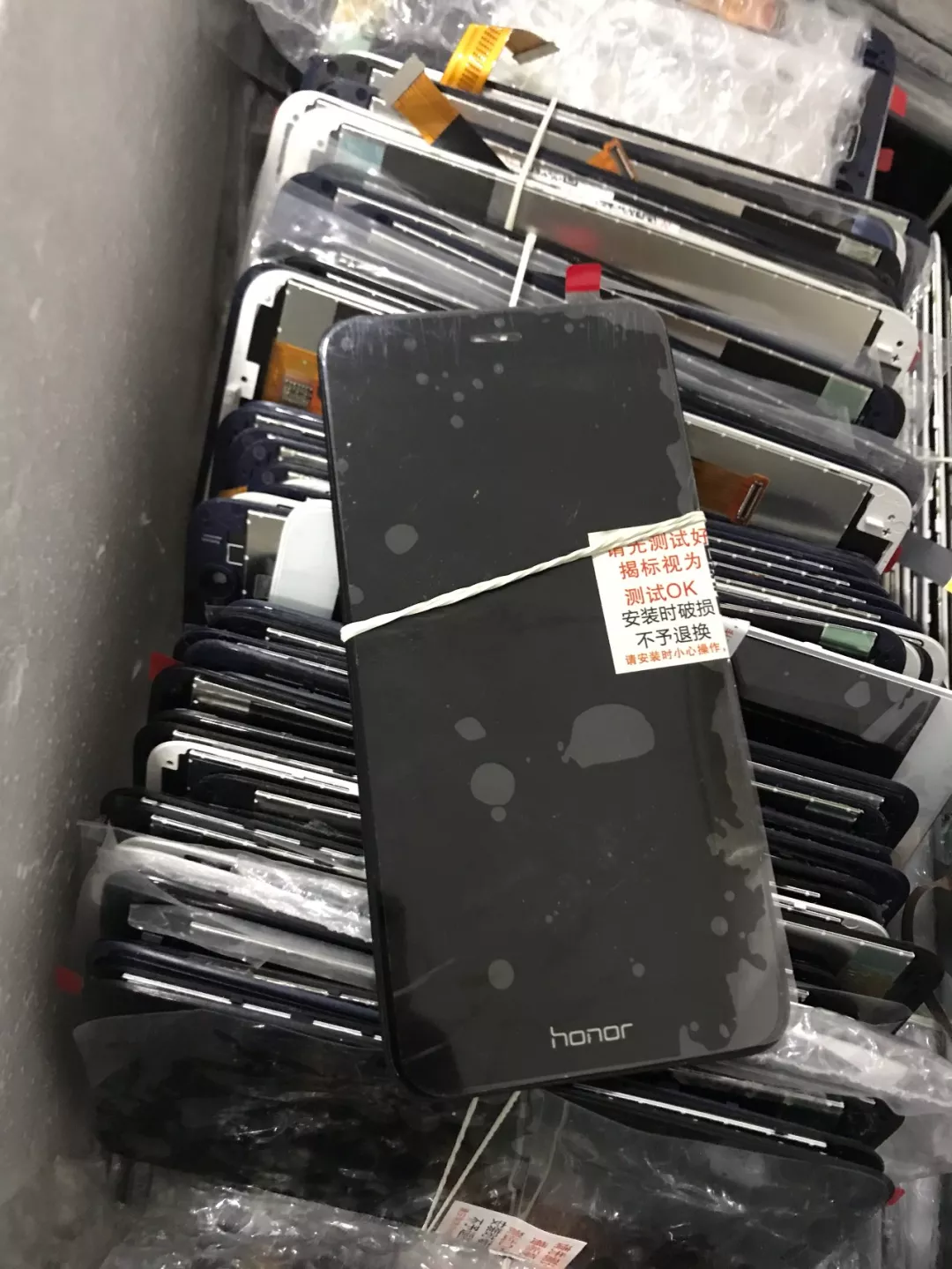對(duì)電商平臺(tái)網(wǎng)店“攜手?jǐn)?shù)碼配件”位于深圳市福田區(qū)華強(qiáng)北路海馨苑的窩點(diǎn)進(jìn)行了突擊檢查,執(zhí)法人員現(xiàn)場(chǎng)查獲假冒華為公司注冊(cè)商標(biāo)“HUAWEI”“honor”手機(jī)零配件一批,經(jīng)清點(diǎn)共計(jì)2431臺(tái)。該窩點(diǎn)負(fù)責(zé)人沈某稱四、五年前,在無營業(yè)執(zhí)照的情況下,在淘寶銷售各種品牌的手機(jī)配件,由于近年華為品牌手機(jī)的熱銷,從去年開始,他雇請(qǐng)了四名員工,將銷售重點(diǎn)轉(zhuǎn)向華為舊款(例如: