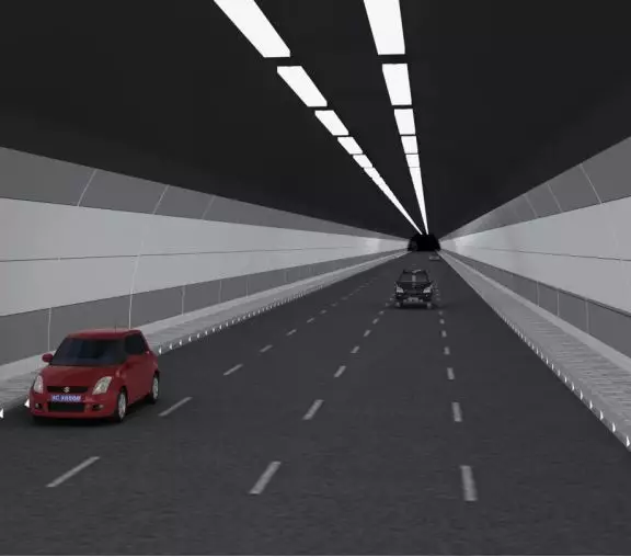 參照香港海底隧道形式,隧道洞內(nèi)采用燈帶式照明