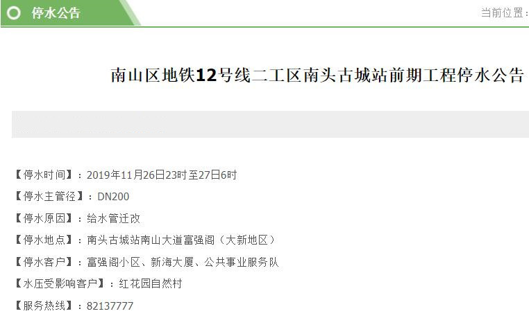 停水時(shí)間:2019年11月26日23時(shí)至27日6時(shí)