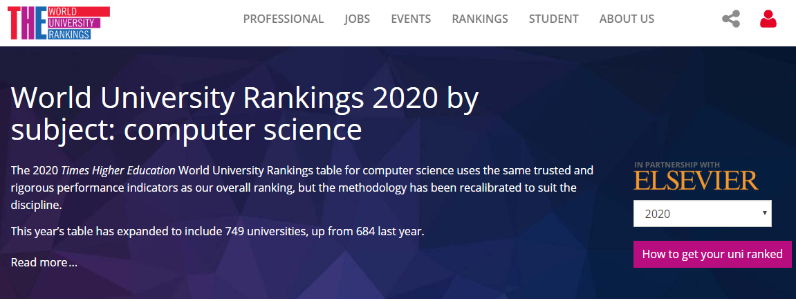 9月份,泰晤士高等教育公布了2020世界大學(xué)排名,近日又對(duì)計(jì)算機(jī)科學(xué)專業(yè)等數(shù)個(gè)熱門學(xué)科進(jìn)行排名更新。今年參與泰晤士計(jì)算機(jī)科學(xué)排名的大學(xué)從去年的684所擴(kuò)大到749所,最新排名顯示,中國(guó)內(nèi)地有6所大學(xué)的計(jì)算機(jī)科學(xué)專業(yè)進(jìn)入世界百?gòu)?qiáng)。深圳大學(xué)在中國(guó)內(nèi)地大學(xué)計(jì)算機(jī)科學(xué)專業(yè)中位列第12,較上一年度提升了1位,去年世界排名位于301-400之間,今年進(jìn)階至201-250位之間。