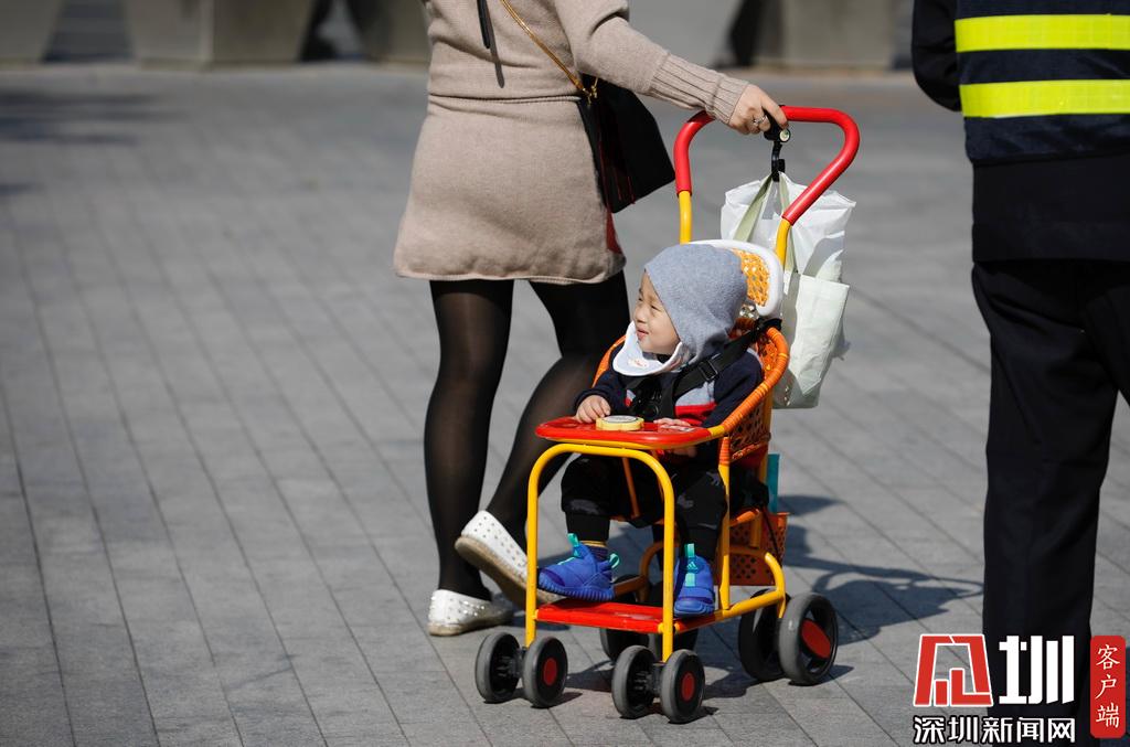 深圳南山區(qū),出行的小朋友穿上冬裝御寒。
