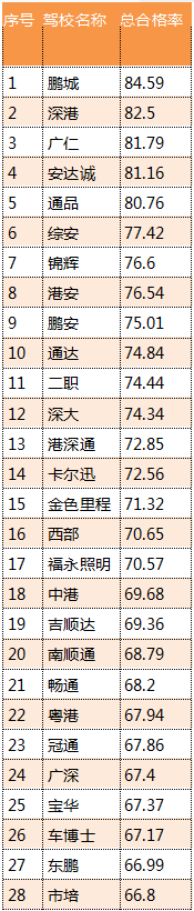見圳客戶端·深圳新聞網(wǎng)2019年12月5日訊 12月4日,深圳市公安局交通警察局官網(wǎng)發(fā)布了2019年11月駕校質(zhì)量排行榜。記者了解到,參與考試質(zhì)量排名的駕培機(jī)構(gòu)共有38所,其中,鵬城駕校排名第一,合格率為84.59%。值得注意的是,在上個(gè)月(10月)駕校考試質(zhì)量排行榜中,排名第一的也是鵬城駕校。深港駕校11月總合格率為82.5%,排名第二。廣仁駕校合格率為81.79%,排名第三。全部駕校平均合格率為72.07%。