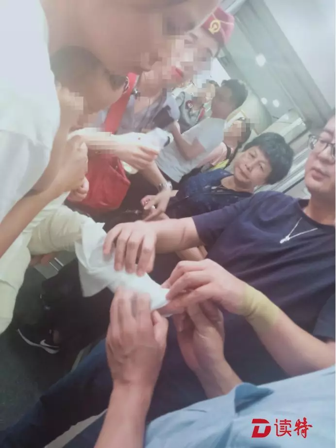 2019年7月27日晚上,一名一歲小童在高鐵上被開(kāi)水燙傷,同在高鐵上的龍華區(qū)人民醫(yī)院燒傷整形科黃謙主任等一行人迅速前往3號(hào)車(chē)廂查看情況。