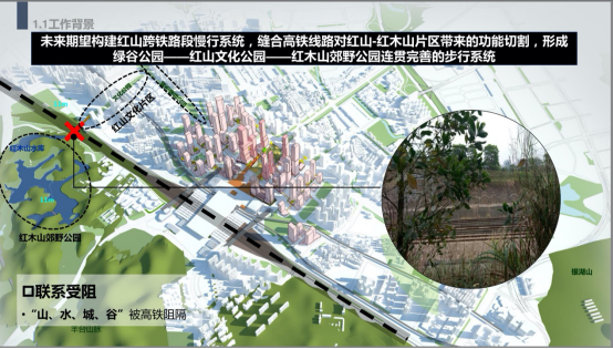 目前的北站,“山、水、城、谷”被高鐵阻段,跨鐵路慢行系統(tǒng)的建設(shè)就很重要啦