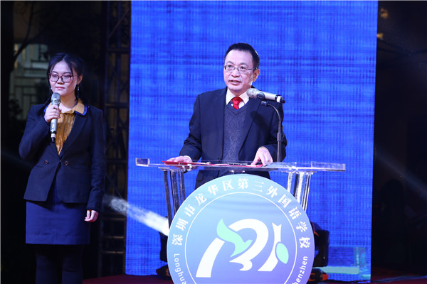 在晚會(huì)正式開始之前,聶細(xì)剛校長在致辭中提到,深圳市龍華區(qū)第三外國語學(xué)校是一所致力于植根中國、面向世界的外國語品牌學(xué)校,培養(yǎng)具有中國精神、世界情懷的國際公民。同時(shí),在借力于孔子學(xué)院、立足打造書香校園、弘揚(yáng)中華民族優(yōu)秀傳統(tǒng)文化基礎(chǔ)上,借力于北京外國語大學(xué)、北京師范大學(xué),在全力推進(jìn)英語雙師云課堂。同時(shí),開設(shè)了俄語、法語、韓語等小語種選修課,未來還將開設(shè)日語、德語、西班牙語等小語種,凸顯外國語特色品牌。學(xué)校成為全國美育名校聯(lián)盟學(xué)校,北京師范大學(xué)項(xiàng)目實(shí)驗(yàn)學(xué)校,北京外國語大學(xué)課題實(shí)驗(yàn)基地,泰國曼松德大學(xué)孔子學(xué)院漢語教學(xué)交流基地等;吸引了一大批來自清華大學(xué)、北京大學(xué)、北京師范大學(xué)、愛丁堡大學(xué)、曼徹斯特大學(xué)、西班牙武康大學(xué)等國內(nèi)外知名高校的優(yōu)秀人才加盟。學(xué)生舞蹈團(tuán)首次登上2020年廣東省少兒春晚的舞臺(tái)。在第五屆深圳教育改革創(chuàng)新大獎(jiǎng)評比活動(dòng)中,榮獲“2019年度家校共育典范學(xué)校”。