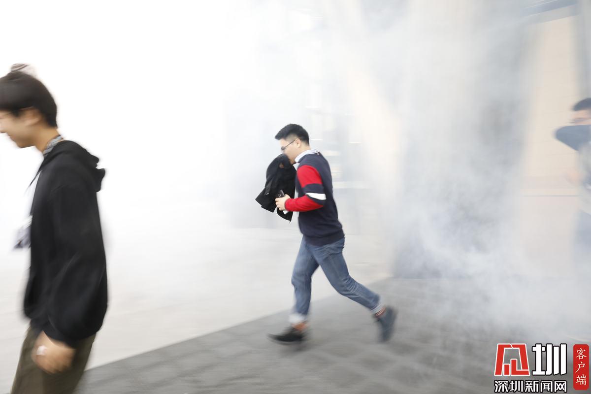 演練開始后,模擬中國華潤大廈24層因電氣線路發(fā)生短路,突發(fā)火災,火勢迅速蔓延。此時正值上班高峰期,樓內有大量辦公人員需要疏散救助,情況十分緊急。“火災”警報拉響后,大樓內部的微型消防站和技術處置隊進行先期處置。深圳市消防救援支隊同時快速調派特勤、南山、寶安、福田等大隊48輛消防車、230余名消防員到場處置,并聯動應急管理、交警、醫(yī)療、水務等部門到場協同處置。消防救援人員“逆行”深入起火建筑,疏散樓內5200余名群眾,同時按照“以固為主,固移結合”的戰(zhàn)術,利用水槍、水泡、滅火機器人、滅火無人機、舉高消防車、投彈式高層建筑干粉消防車等壓制火勢,最終成功將“大火”撲滅。