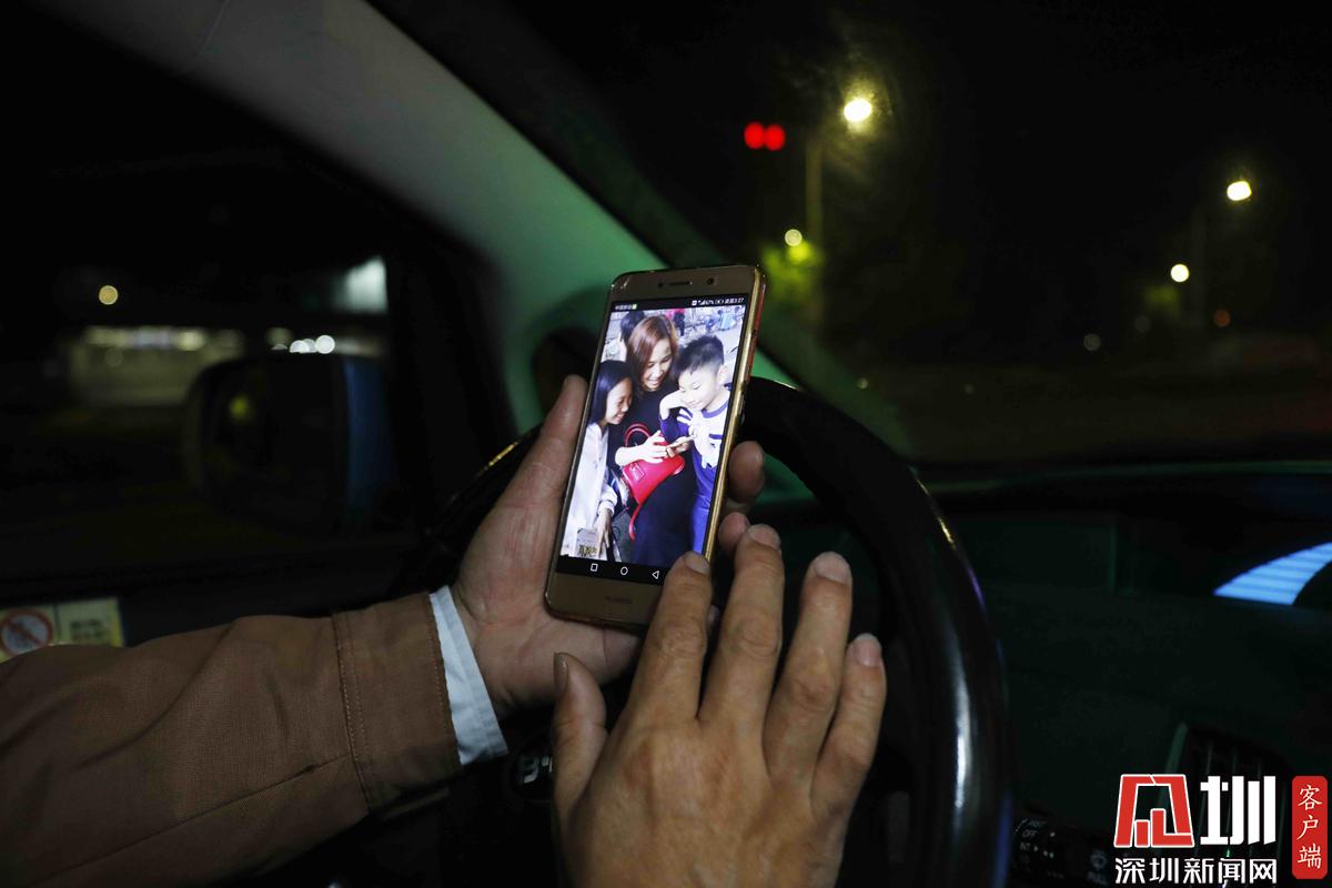 閑暇時間,艾建永正在看手機中妻子和兩個孩子的照片。