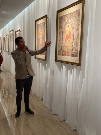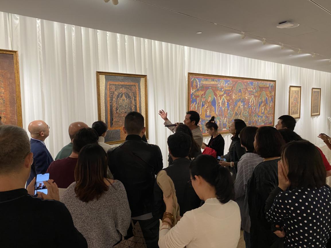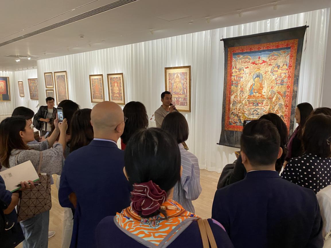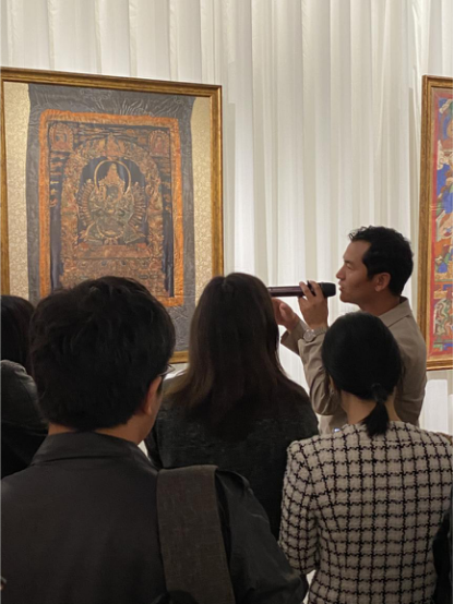 為了讓觀眾更好地了解本次展出唐卡的工藝美及其背后所蘊(yùn)含的人文價(jià)值,桂心堂主人邀請(qǐng)了布達(dá)拉宮唐卡專(zhuān)家——次仁占堆老師、曾長(zhǎng)期生活于蘇州的資深唐卡愛(ài)好者葉小龍,一同在1月4日的下午,給觀眾們帶來(lái)了一場(chǎng)深入淺出的導(dǎo)覽活動(dòng)。