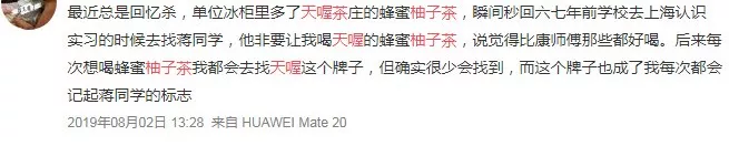 不少網(wǎng)友發(fā)現(xiàn)超市、商店下架天喔招牌飲品蜂蜜柚子茶后,紛紛表示喝了這么多年,突然發(fā)現(xiàn)沒得賣之后,有種莫名的懷念。