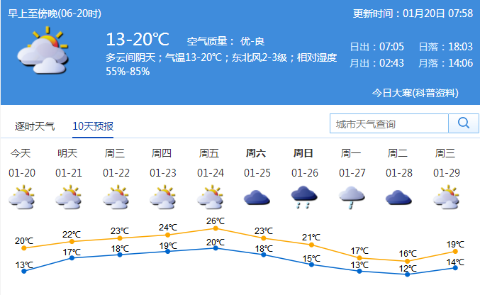 見圳客戶端·深圳新聞網2020年1月20日訊 今日迎來一年中最后的一個節(jié)氣——大寒。小伙伴們都回家過年了嗎?近兩日,深圳陰天間多云,天氣有些涼。未來一周天氣如何?