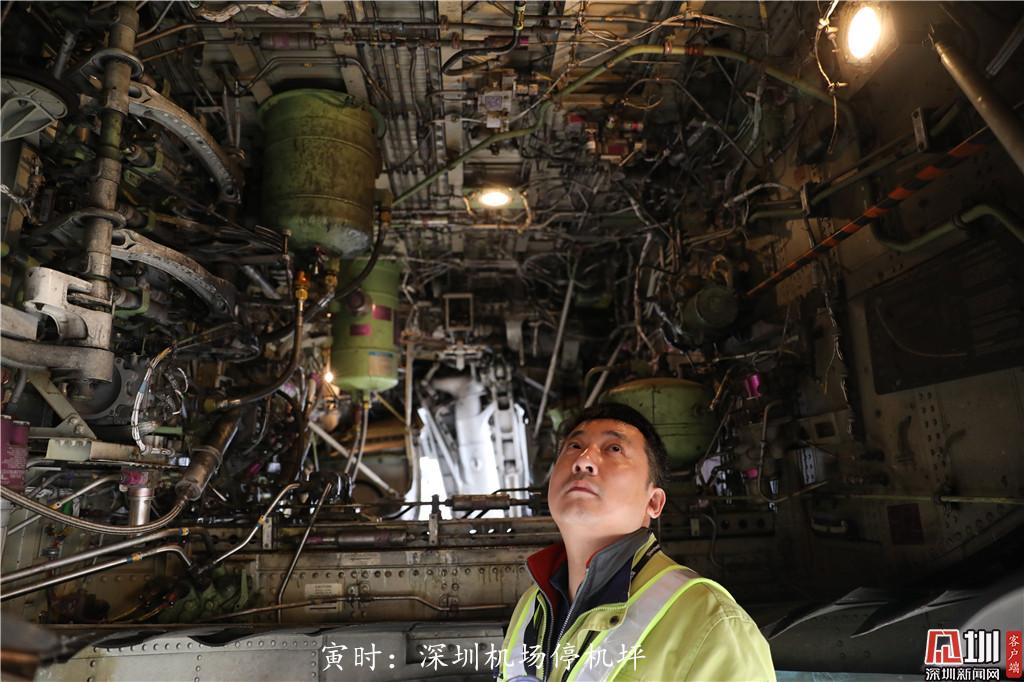 寅時(shí):早上4點(diǎn)50分,深圳航空工程師張亮對(duì)客機(jī)起落架艙進(jìn)行例行檢查。春運(yùn)期間的張亮最忙一天要完成12—13架次的飛機(jī)檢修,一架飛機(jī)的檢修時(shí)間需要40—60分鐘,年夜飯往往是和同事們一起吃的。