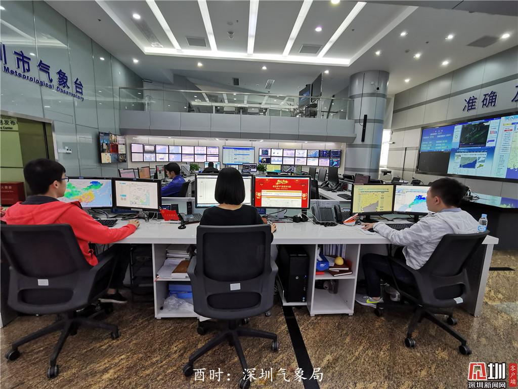 酉時(shí):17點(diǎn)31分,深圳市氣象局預(yù)報(bào)服務(wù)團(tuán)隊(duì)的蔡偉源、鄭群峰、賀佳佳、胡霄、張超春節(jié)值守,在氣象預(yù)警預(yù)報(bào)業(yè)務(wù)大廳密切關(guān)注春運(yùn)天氣。