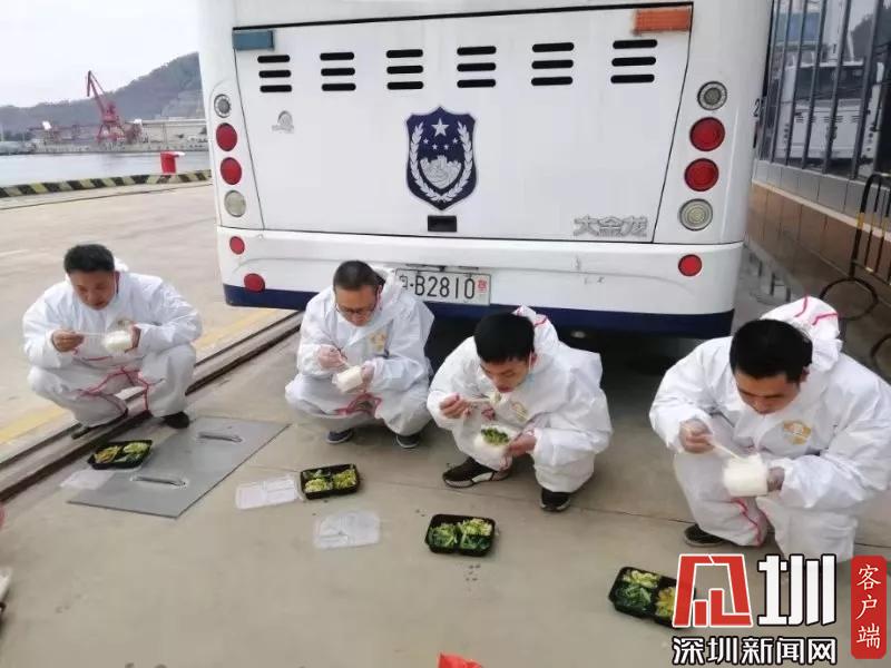 應(yīng)急轉(zhuǎn)運“歌詩達·威尼斯號”乘客期間,工作人員抓緊時間吃午飯。