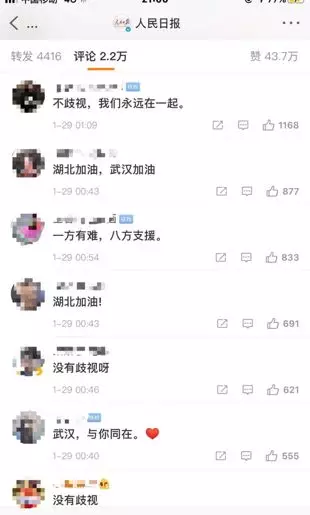 我們抓緊時間防疫,也抓緊時間去溫暖身邊受疫情傷害的湖北人、廣東人、浙江人……言語雖輕,但一聲聲加油足以撐起抗疫信心。