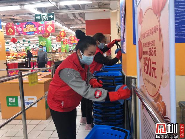 “其實(shí)家里人知道后也不贊成我們這個(gè)時(shí)候來做志愿者,畢竟也有點(diǎn)擔(dān)心嘛”于文平對(duì)記者說:“我們作為一個(gè)小市民,對(duì)國(guó)家來說大的貢獻(xiàn)可能談不上,但是因?yàn)槲蚁矚g深圳這座城市,所以我決定要出一份力,做一些力所能及的事,過年期間能讓大家吃上安心的食品,來購(gòu)物的時(shí)候能用上消毒過的購(gòu)物車、購(gòu)物籃,我也覺得很開心。”