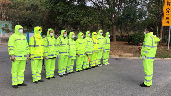目前,燕羅街道各社區(qū)將庫存的防水材質(zhì)三防防護(hù)服全部送到一線,隊(duì)員們穿著時(shí)將袖口、脖口的鎖口扎緊,褲子選取大一碼的方便遮住腳面,同時(shí)佩戴護(hù)目鏡、口罩、一次性手套、一次性鞋套,對(duì)全身進(jìn)行包裹。換班時(shí),利用配置好的消毒水全面噴淋,或是在消毒桶里浸泡不少于20分鐘,并在太陽下掛起晾曬。