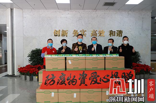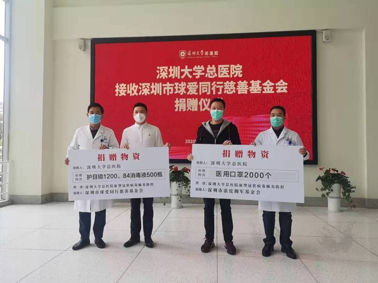 向深圳大學總醫(yī)院捐贈消毒藥水和口罩。