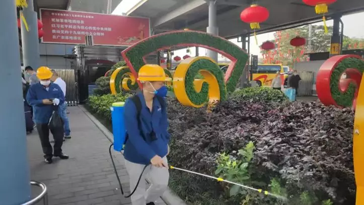 蛇口街道辦派專人對深圳灣口岸外圍重點防控區(qū)域進(jìn)行消殺滅菌工作