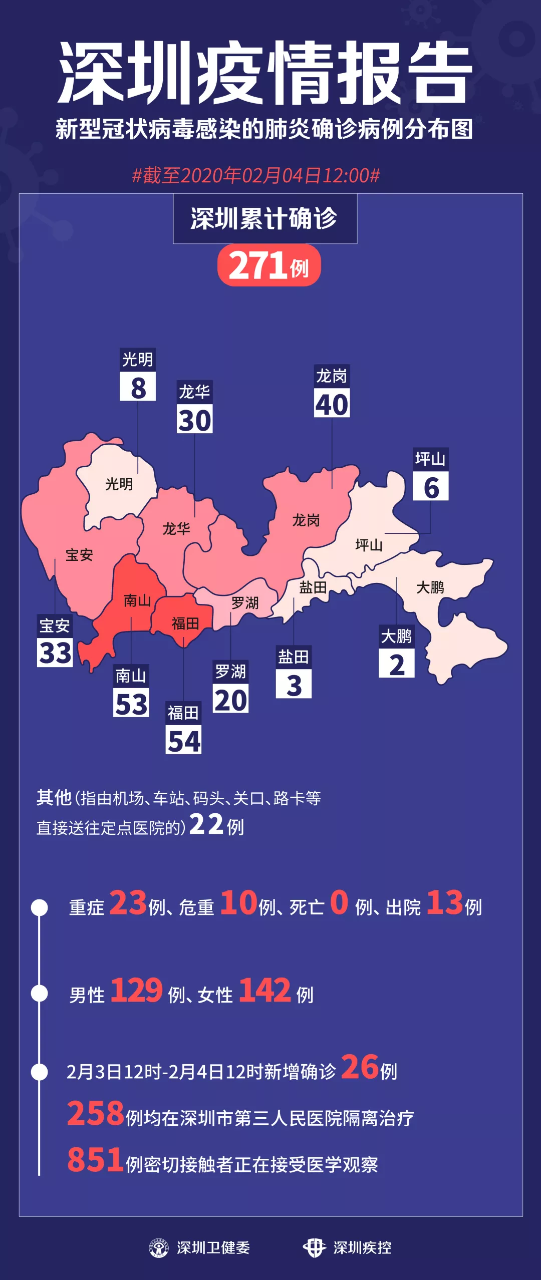 2月3日12時-2月4日12時,深圳新增新型冠狀病毒感染的肺炎確診病例26例。