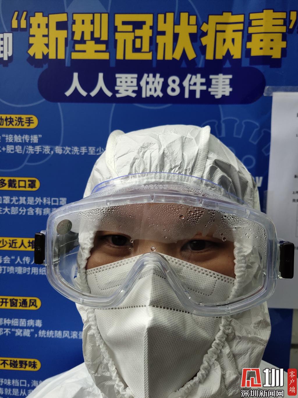 剛穿上防護服,護目鏡是這樣。