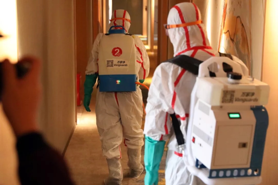▲疾控人員對病人逗留過的場所進(jìn)行終末消毒