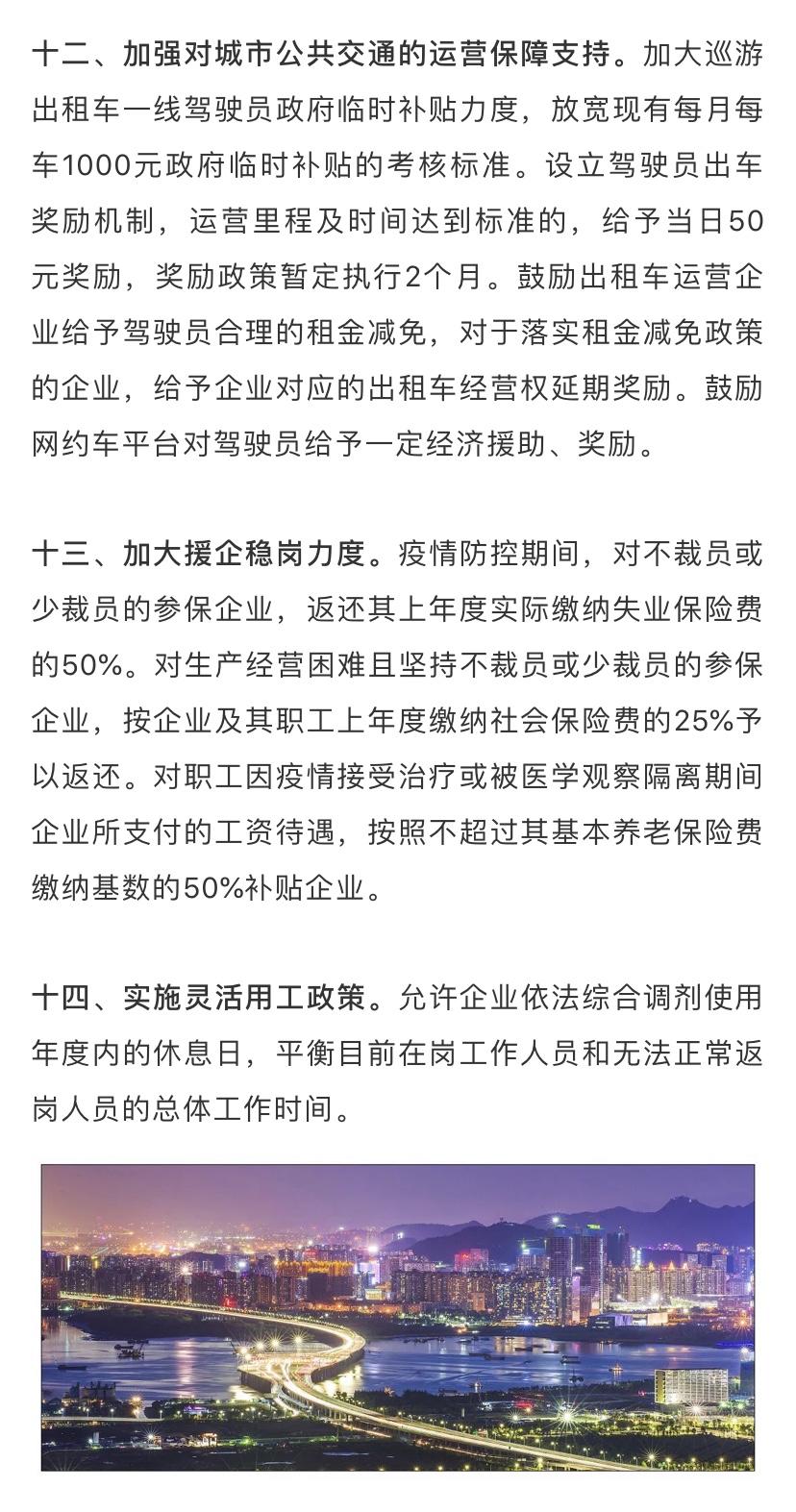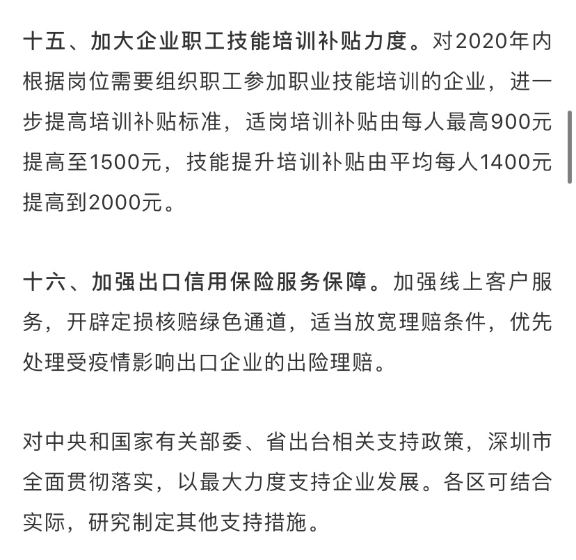 據(jù)了解,為深入貫徹落實習(xí)近平總書記關(guān)于堅決打贏疫情防控阻擊戰(zhàn)的重要指示精神,全面落實黨中央國務(wù)院和省委省政府關(guān)于做好新型冠狀病毒感染的肺炎疫情防控工作的決策部署,在做好防控工作的同時統(tǒng)籌抓好改革發(fā)展穩(wěn)定各項工作,支持企業(yè)共渡難關(guān),保障城市平穩(wěn)運行和經(jīng)濟(jì)穩(wěn)定增長,深圳市政府特制定該工作措施。