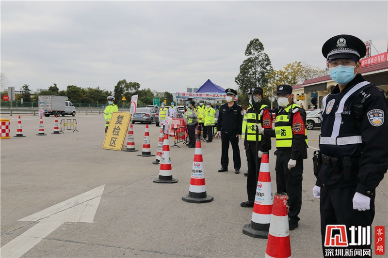 民警李勝仁(右一)在深汕高速龍崗服務區(qū)(金錢坳立交)檢查卡點值守。