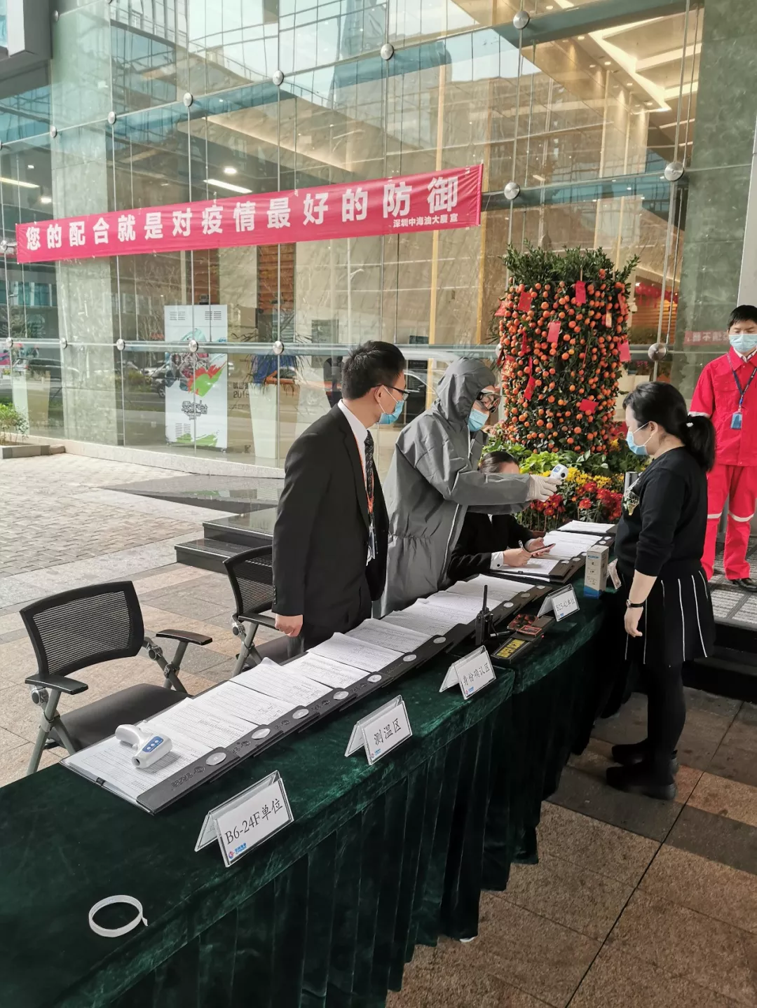 工作人員正在進(jìn)行測(cè)溫。新華社記者孫飛2月7日攝