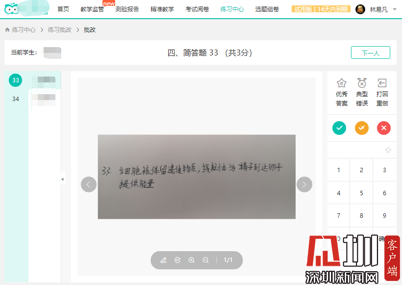除了備課、上課外,如何及時(shí)完成布置作業(yè)、批改作業(yè)的工作也是線上授課的一個(gè)挑戰(zhàn)。深圳中學(xué)提前布局,配套了線上的智能教學(xué)系統(tǒng),讓同學(xué)們每天在線上完成作業(yè),從課后練習(xí)的角度保證了教學(xué)質(zhì)量。課后教師們通過(guò)學(xué)校的智能教學(xué)平臺(tái)批改同學(xué)們的作業(yè),并通過(guò)微信等方式回答學(xué)生的問(wèn)題。