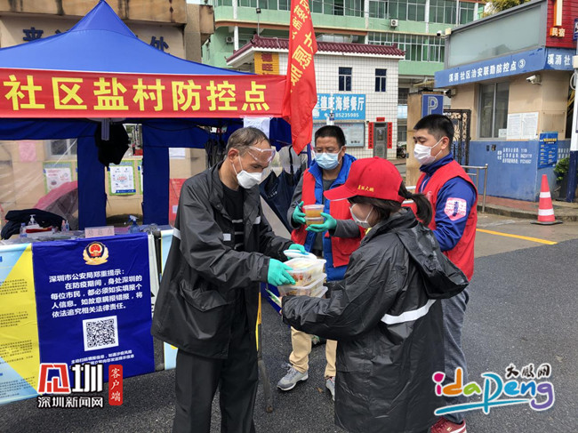 林建偉(右一)在南西路防疫監(jiān)測(cè)點(diǎn)值守