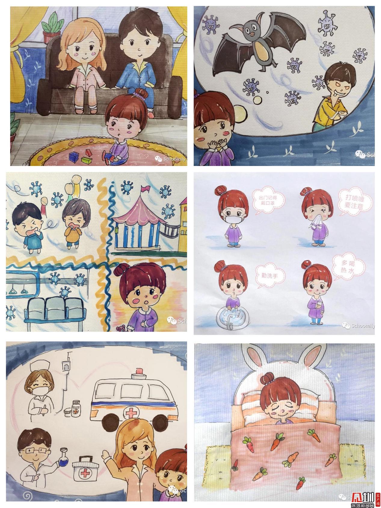 疫情打破了假期的寧靜,桃小的隊(duì)員們紛紛行動(dòng)起來,錄制小視頻,向先鋒致敬,為武漢加油!學(xué)生、家長們也紛紛發(fā)揮自己的聰明才智,親子齊上陣,一(3)班薛然小朋友的家長帶著孩子一起繪制防范新冠病毒的繪本,并配音、剪輯、制作成精美的視頻,既幫助了身邊的同學(xué),又在這個(gè)特殊的時(shí)刻陪伴和見證了孩子的成長。