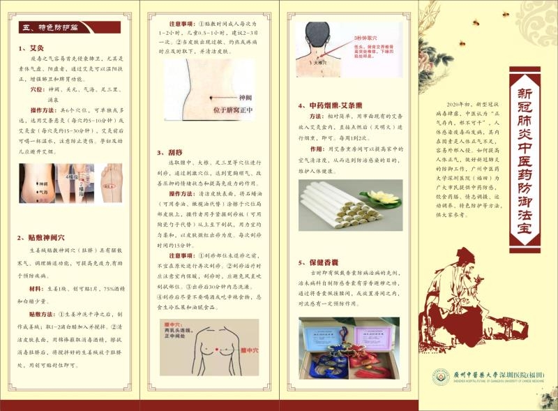 據(jù)張?zhí)旆?/span>介紹,中醫(yī)認為“正氣存內(nèi),邪不可干”,人體感染疫毒而發(fā)病,其內(nèi)在因素是人體正氣不足,容易外邪入侵。如何提高人體正氣,做好新冠肺炎的防御工作,廣中醫(yī)深圳醫(yī)院制作了《新冠肺炎中醫(yī)藥防御法寶》將在近日印發(fā),派送到居民手中,指導(dǎo)市民運用中醫(yī)藥特色方法,從情志調(diào)理、起居調(diào)控、飲食調(diào)養(yǎng)、傳統(tǒng)健身、中藥防感、特色防護等方面助力防控工作,傳授八段錦、經(jīng)絡(luò)拍打操、食療藥膳、中醫(yī)按摩手法、穴位艾炙等養(yǎng)生保健方法,增強體質(zhì),提高防控效果。