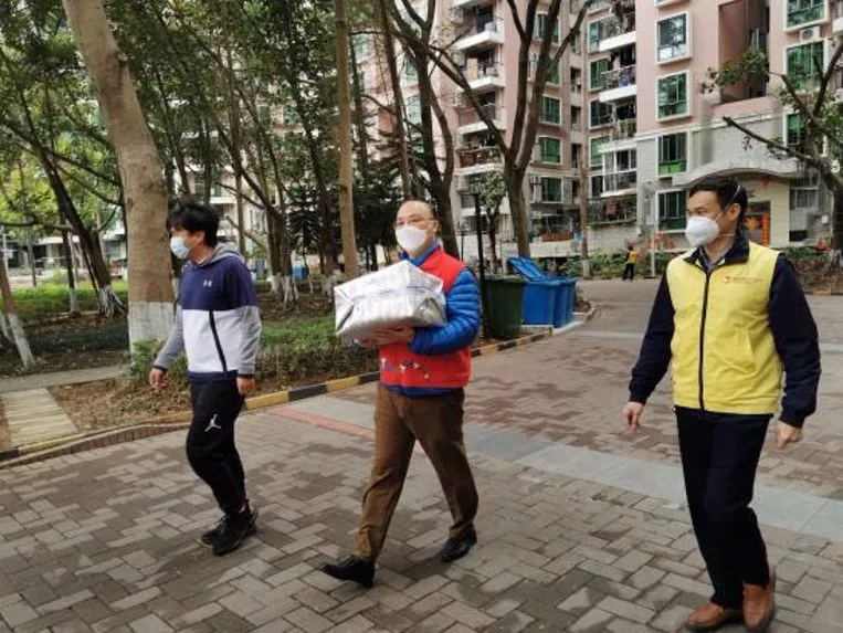 新秀社區(qū)黨員志愿者為居家醫(yī)學(xué)觀察的家庭配送食品物資(深圳晚報記者楊少昆攝)