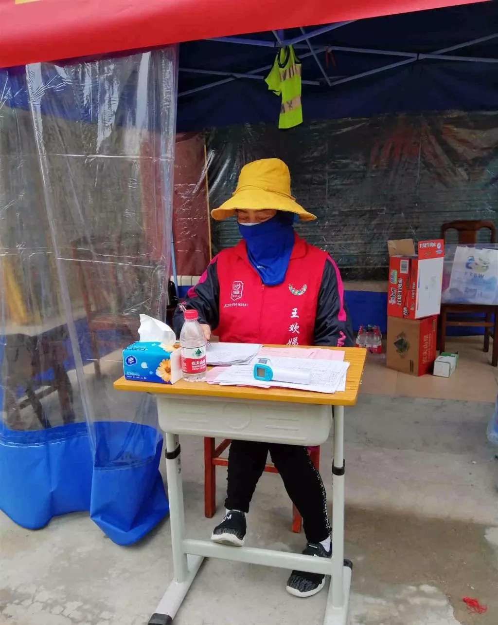 王歡娣在檢疫卡口做排查登記