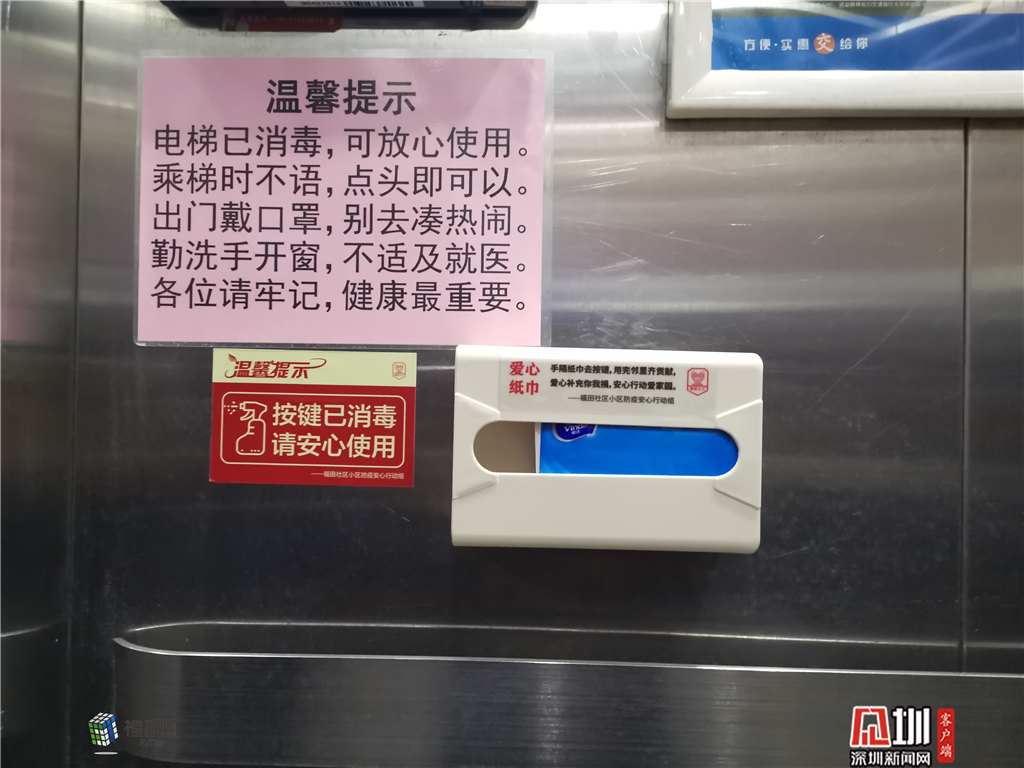 愛心紙巾和電梯按鍵保護(hù)膜受到居民好評(píng)。